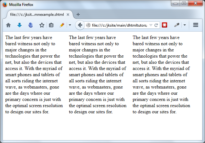 Note that CSS3 multi-column layout shouldn't be confused with multi-column site layout, where the goal is to create an entire site layout using varying column widths to house different parts of a webpage. We'll explore the later using another CSS3 module- CSS3 Flexible Box Layout- to achieve this in an upcoming tutorial.