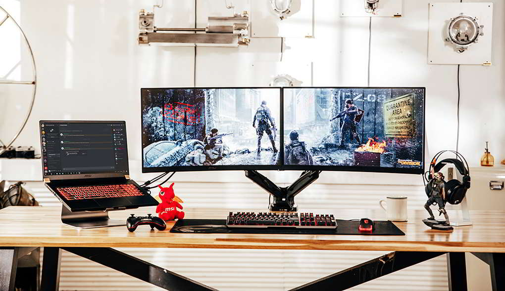 Your desk should be wide and sturdy enough to handle your entire setup with some extra space for your notes, peripherals, and other work stuff. You should also pick the right desk shape to complement your workstyle and workspace.