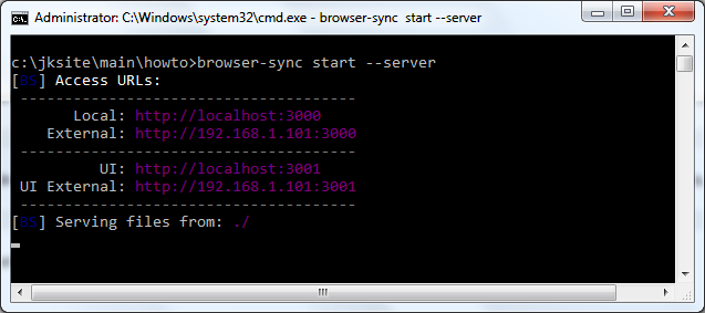 2) Install BrowserSync: With node.js installed, still at the terminal, type: