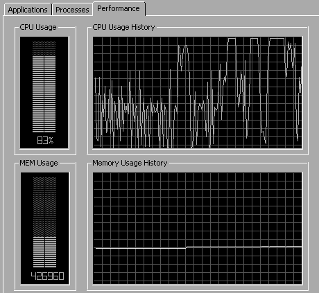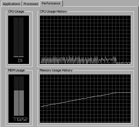 As you can see, we have done fifty thousand iterations instead of 5000, and still the memory usage is flat (i.e. no leaks). The slight ramp is due to some other process in my PC.